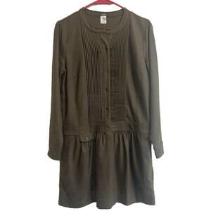 J.Crew Women’s Size 4 Wool Dress Pin Tuck Olive Pleated Drop Waist Cottage Prairie