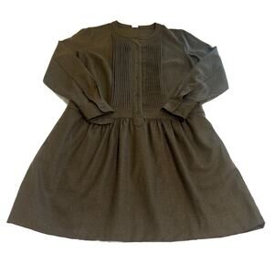 J.Crew Women’s Sz 4 Wool Dress Pin Tuck Olive Pleated Drop Waist Cottage Prairie