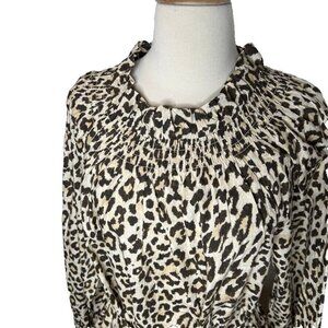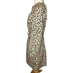 J.Crew Womens Tall Leopard Print Ruffle Neck Dress Size LT BL023