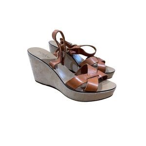 J Crew Womens Tan Heels Leather Platform Strappy Wedge Sandals Size 9