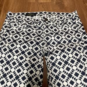 J.Crew Womens Toothpick Ankle Pant Size 25 Geometric Aztec Print Navy Blue White