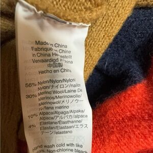 J.Crew Women’s Turtleneck Sweater L Red Navy Camel Colorblock Merino Wool Alpaca