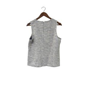 This sleeveless tweed top by J.Crew combines sophistication and modern style. Its blue and white textured fabric with delicate trim ensures a polished look.