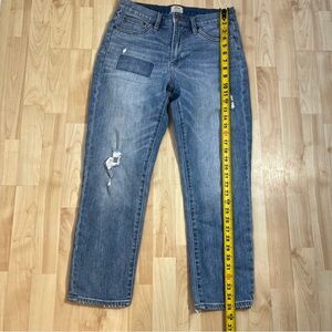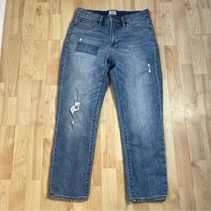 J.Crew Womens Vintage Crop Patch Medium Wash High Rise Distressed Jeans Size 29