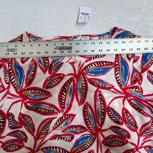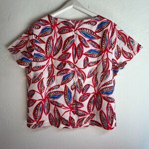 J.Crew Womens White Red Leaf Print Linen Cotton Short Sleeve Top XXL F1172 New