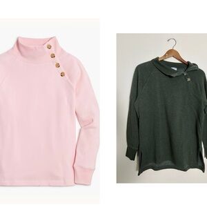 J.Crew Womens Wide Button-Collar Tunic Sweatshirt Cloudspun Fleece Small Outdoor