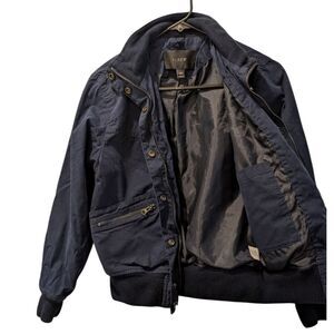 Stay stylish and comfortable with this J. Crew Women's navy jacket. Perfect for any occasion, this jacket offers a sleek look with its deep navy color. Deep front pockets. Ribbed trim. Standing collar.