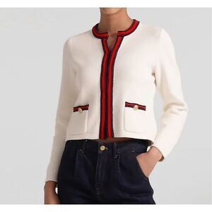 J.Crew Womens Cream Emilie Contrast Trim Ribbed Cardigan Size XXL