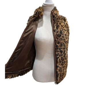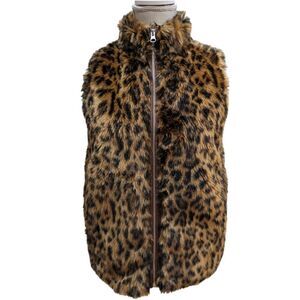 J.Crew Women's Faux-Fur Leopard Vest Zip up Style G9519 Size XXS