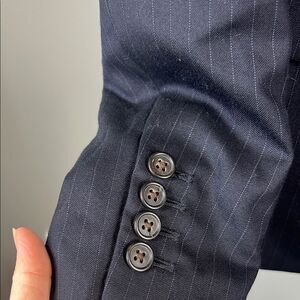 Elevate your style with the Navy Blazer. Perfect for any occasion, this blazer offers a sleek and sophisticated look. The deep navy color adds a touch of elegance to your wardrobe. Blazer is lined . 100% wool
