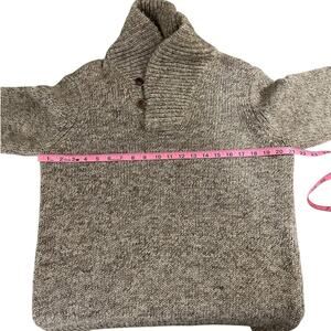 Wool alpaca blend shawl collar two button pullover sweater. Ribbed cuffs, hem and collar. 50% wool, 40% acrylic, 10% alpaca. Brown and cream. Size medium. Please see photos for measurements.