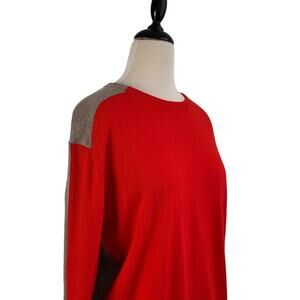 J.Crew Wool Blend Colorblock Tunic Sweater Women’s M Red Gray Relaxed Preppy