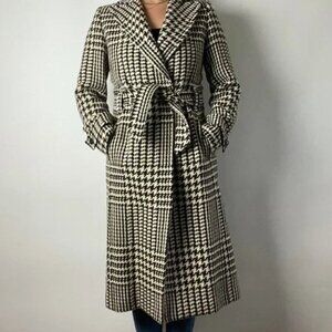 J.Crew Wool Blend Houndstooth Check Belted Wrap Trench Coat Classic 8