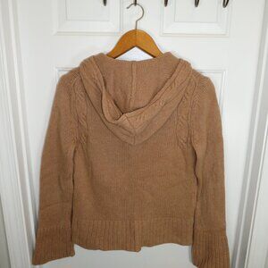 J.Crew Wool Full Zip Hoodie Cardigan Sweater Light Brown Cable Knit Small