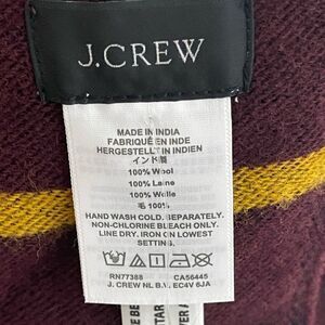 Cozy wool scarf by J. Crew. Rich burgundy with mustard stripe. Perfect for chilly days.