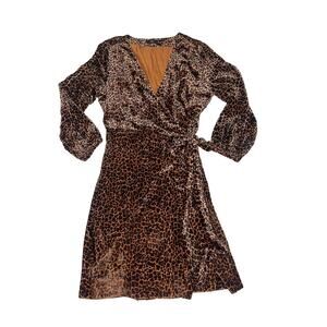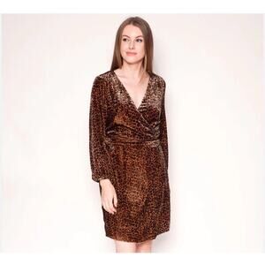 J.Crew Wrap Dress Size 10 Leopard Velvet Velour Long Sleeve Knee Length Mob Wife
