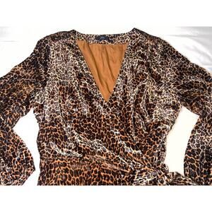 J.Crew Wrap Dress Size 10 Leopard Velvet Velour Long Sleeve Knee Length Mob Wife.