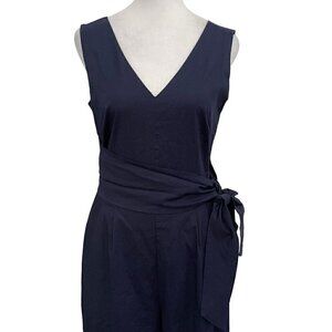 J.Crew Wrap-Tie Wide Leg V-Neck Jumpsuit Poplin Cotton Navy Blue Nautical size 4