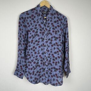 J.Crew, blurred cherries print, novelty shirt, button-down, preppy style, classic closet staple, workwear blouse, XS women's top, soft viscose
