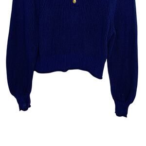 J.Crew XS Navy Ribbed Cotton Button Collar Sweater Classic Preppy