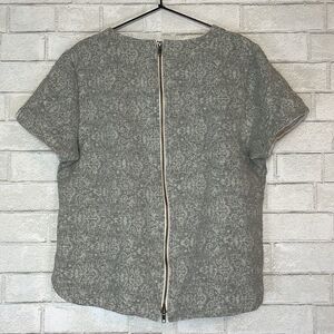 J. Crew Zip Back Brocade Short Sleeve Blouse XL