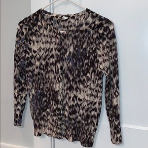 JCrew animal print 3/4 sleeve Marino wool cardigan