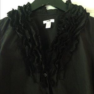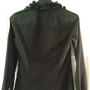 J.Crew black button down shirt with ruffles. Size 2, 100% cotton in like new condition.