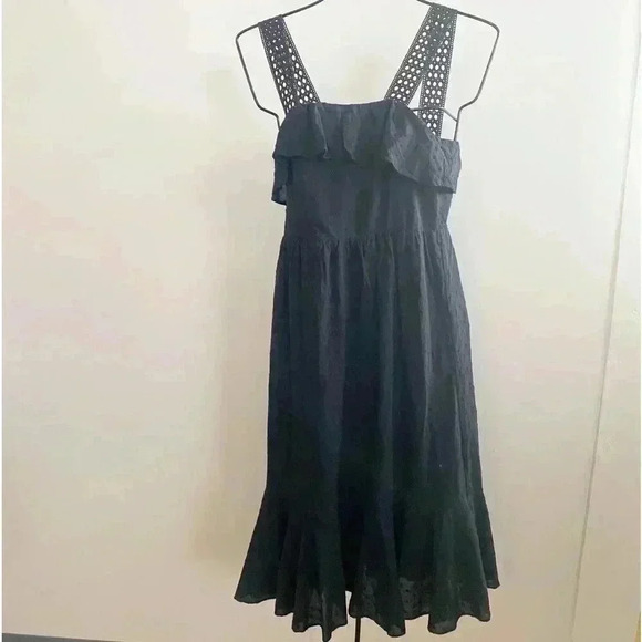 J.Crew black ruffled eyelet midi dress. Size 00. Fits true to size. Excellent used condition