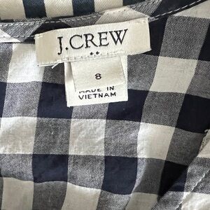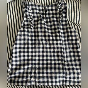 Navy & white checkered pattern with ruffles. Button closure in the back. Thin material so perfect for the warmer months or to wear with a cardigan. Worn but still great condition.