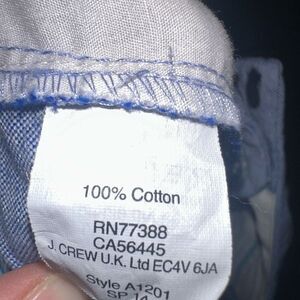 J Crew blue, pedal pusher, 100% cotton, business casual, flat front, professional, cropped pants. Pairs well with a shell and blazer or blouse. Approximately 18.5 inches across the waist, 10.5 inch rise, and 25 inch inseam. From a pet and smoke free house.