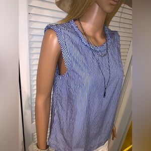 J.Crew blue and white Striped Blue Sleeveless Top ruffles size 4