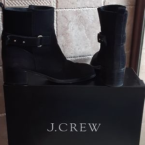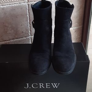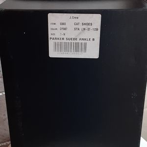 JCrew-Parker suede ankle boot. Worn once or twice. Gold hardware. Heel about 2 inch, chunk. Comfortable.