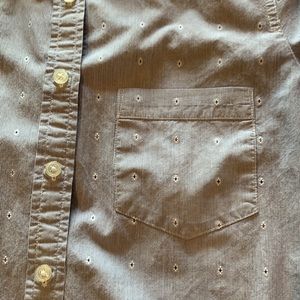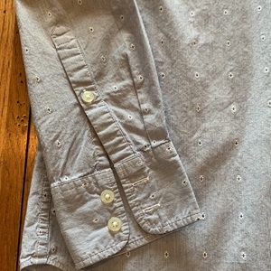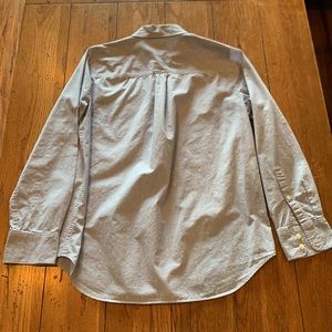Button down, blue and white very narrow stripe, color best shown in close pic showing label and size. Excellent condition!