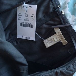 JCrew strapless gray dress. Horizontal pattern embroidered. Can dress up or down. Back zip and bust structure. Size 4 NWT. Very cute! Smoke free, pet free home