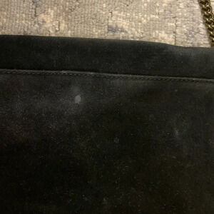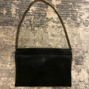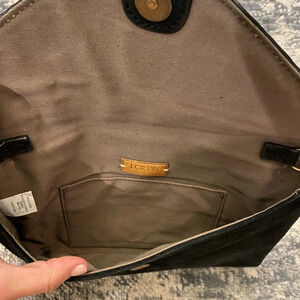 JCrew factory 100% leather black suede envelope clutch with gold chain. Super cute and can be used as a shoulder bag and clutch if you put the chain inside tan canvas interior. In good used condition. Some fading and marks to suede. See pictures for details on condition. Offers welcomed!