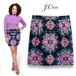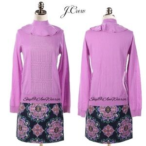 Highly rated customer fav is this J.Crew factory mini-skirt in a Kaleidoscope floral pattern in purple/pink hues that is perfect with my J.Crew purple ruffle mock-neck sweater, shown here & sold separately. NWT. Size 4, see photos for measurements.