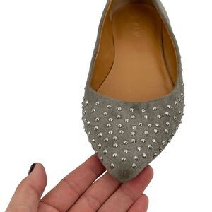 J. Crew gray suede pointed studded flat size 7.5. Gently used condition no sign of wear to the upper. Mild scuffing to the sole. See photos for details