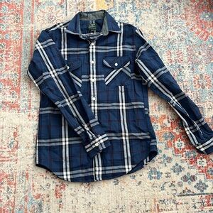 100% cotton, plaid flannel. Perfect condition, never worn. Beautiful weight.