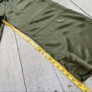 Just in: J.Crew super cool high waisted satin paper-bag pants in gorgeous olive green color are the perfect statement pant to wear with a basic tee or blouse. Size 12, see photos for measurements. Satin is very soft, not stiff at all.