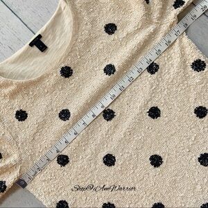 Just in: Wildly popular, blogger favorite is this J.Crew ivory sequin top with black polka-dot design that is sure to be a favorite no matter how you style it! Pair with my J.Crew Collection polka-dot pencil skirt or my J.Crew pom pom trim black pants for added whimsy. Please note: this is the retail version with the longer sleeves & not the factory version. EUC, retailed at $128. Generously priced at $30 off! Size small, see photos for measurements.