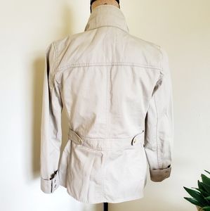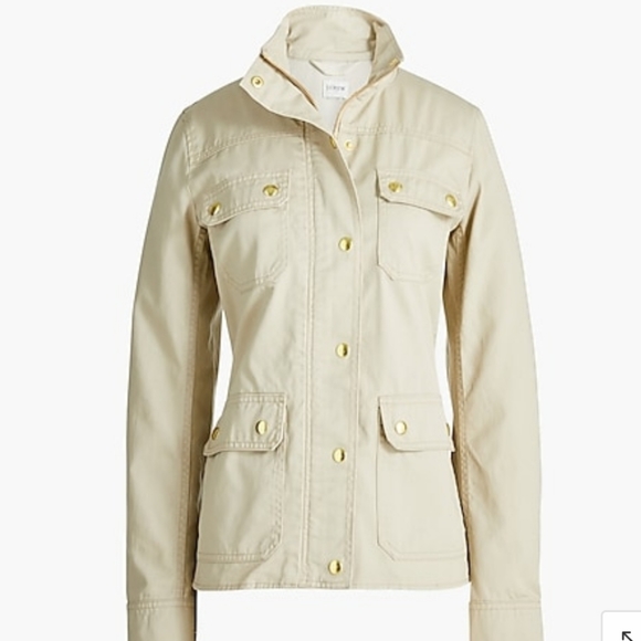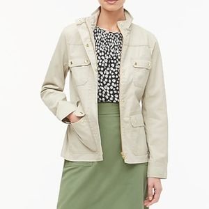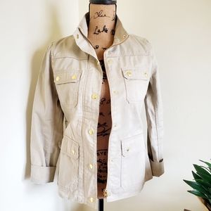 J.Crew Factory Resin-Coated Twill Field Jacket in color cement size xs. Zip and button closure. Snap pockets. Gold color hardware.
