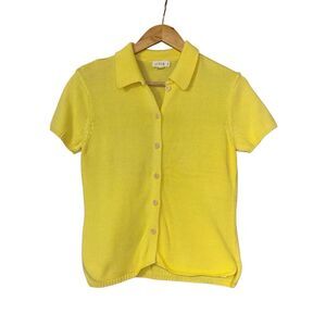 J.Crew knit short sleeve button up cardigan sweater top cotton butter yellow med