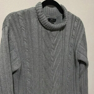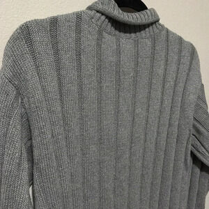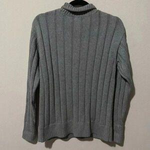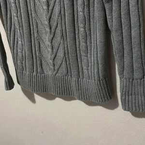 This is a beautiful mock neck knit sweater by J.Crew in 100% Cotton. Its a dark grey color in a thick heavy knit material. Perfect for the upcoming fall and winter. Excellent condition.