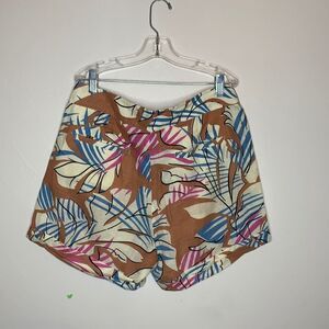 Cute tropical print Drawstring at front waist Zipper fly Waist 28” Rise 10” Inseam 4.5” Excellent condition A21