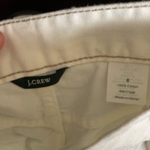 J.Crew denim mini skirt, white/ivory color. Intentional distressed on the front, but not ripped all the way through.