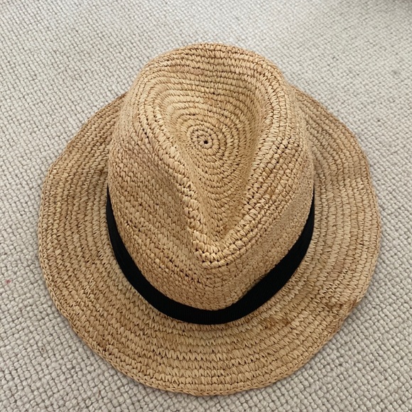 JCrew packable woven straw fedora with black ribbed trim. Worn a handful of times.