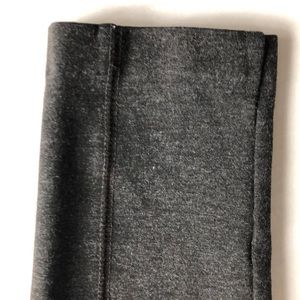 Back zip elastic waist legging pant. Nice and thick with plenty of stretch. Back stitch detail adds a dressy feel. Charcoal heather grey.