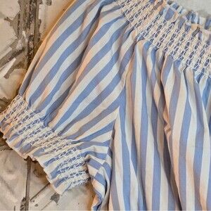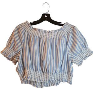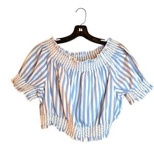 J.Crew puff-sleeve smocked crop top with baby blue/white stripes - Medium