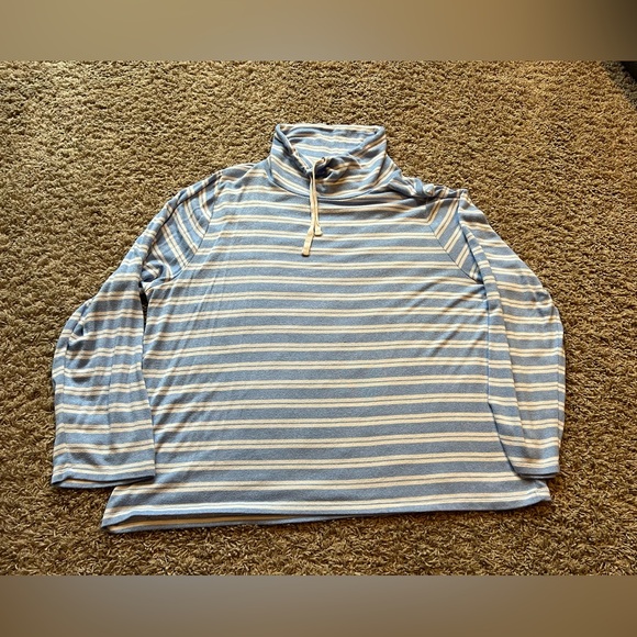 Blue/white stripe j.crew pullover. Lightweight. Drawstring funnel neck. Size 3x.