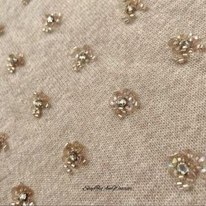 Stunning J.Crew NWT cream/tan wool cashmere blend v-neck jeweled cluster constellation cardigan sweater with full button closure and front pockets is perfect this season with a pencil skirt or high waisted trousers for a chic look. Little sequin gems twinkle in the light. Special rare find! This old school gem retailed at $168! Value priced at $20 off. VGUC, all beading is secure! Size medium. See photos for measurements.
